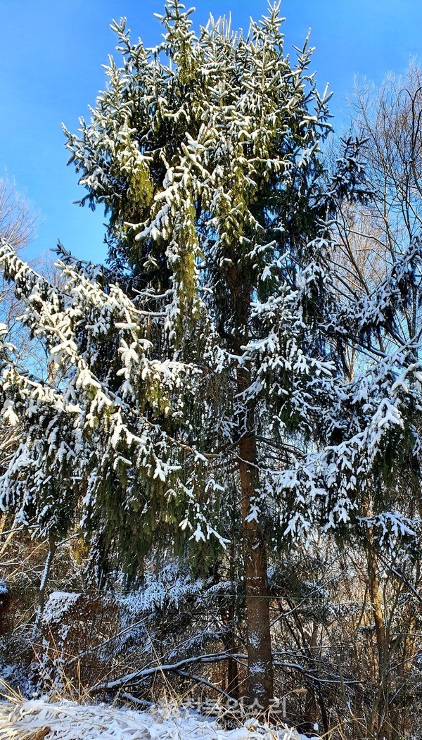 눈이 갑자기 많이 내려 대지가 꽁꽁 얼어붙었습니다. 연말이라 그런지 더욱 을씨년스러운 날씨지만 가까운 산책길에서 만난 자연의 아름다움이 느껴지는 풍경을 담은 사진입니다.