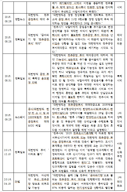 - 옛 대한방직 전주공장 부지 개발 관련 23년 간 언론 보도 사례 분석(4)