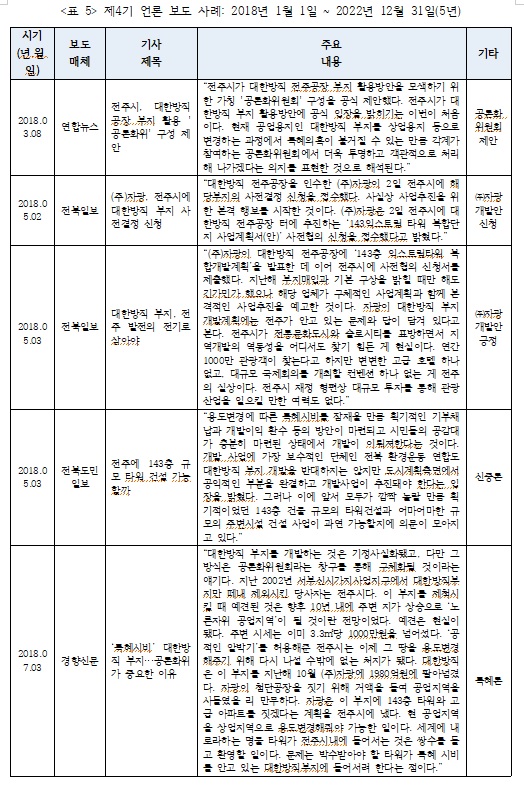 - 옛 대한방직 전주공장 부지 개발 관련 23년 간 언론 보도 사례 분석(5)