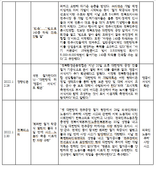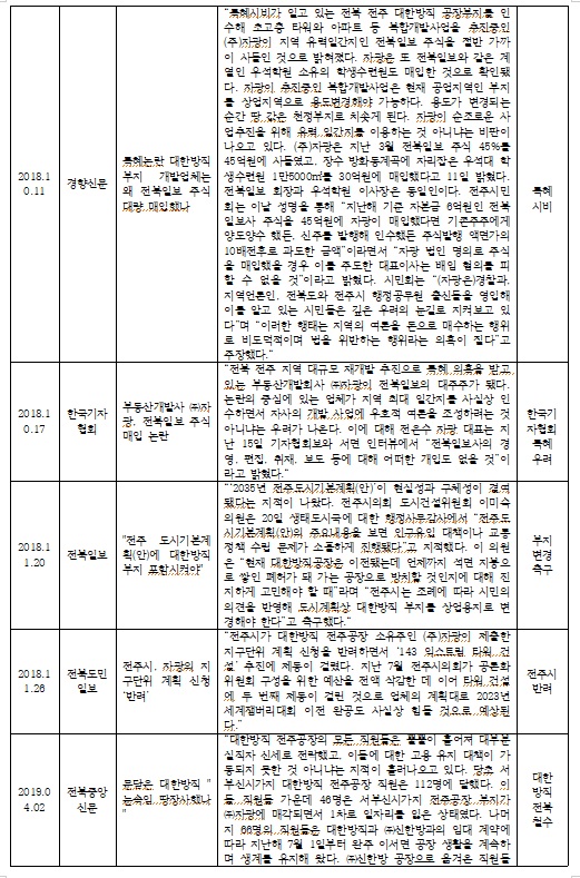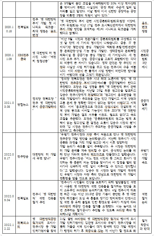 - 옛 대한방직 전주공장 부지 개발 관련 23년 간 언론 보도 사례 분석(3)