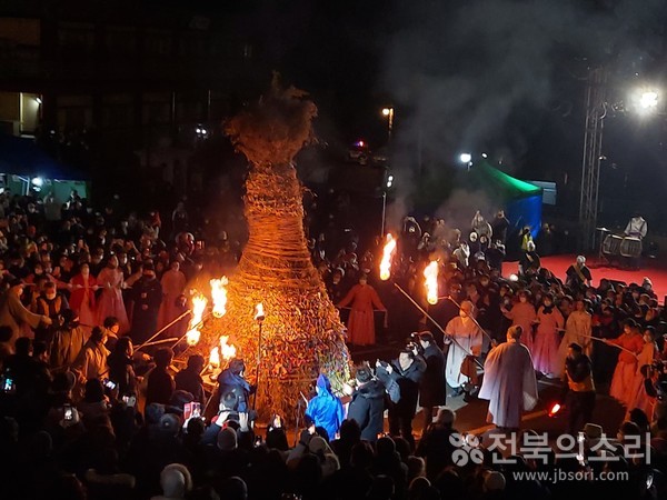 그러고 나서 금년 한 해의 무사안녕과 소원성취를 기원하며 불이야!!! 불이야!!!를 외치며 달집에 불을 지릅니다. 달집이라는 소망나무에 걸린 소원 쪽지도 함께 태우며 우리 모두의 소원성취를 기원하기도 합니다. 많은 분들이 간절한 마음으로 소원을 적어 달집에 매달은 쪽지들도 활활 타오르는 달집과 함께 불길에 휩싸이며 불꽃의 향연도 절정에 다다르고 활활 타오르는 달집에서는 탁! 탁! 탁! 하며 요란한 소리를 내며 타오릅니다.