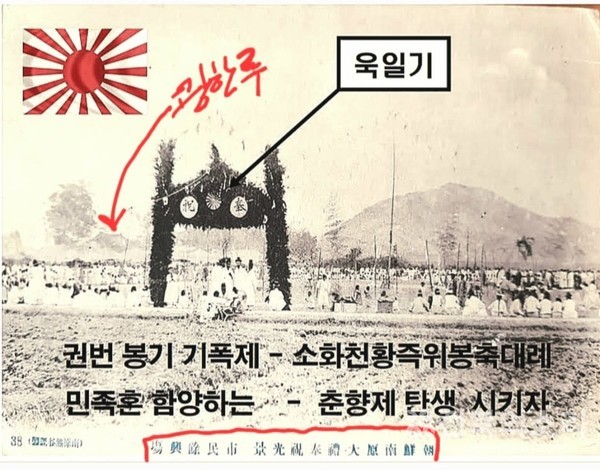 남원 광한루 앞 광장에서 개최한 일본 소화천황봉축대례 축사에 나선자들, 면마다 봉축대례 축하문을 무명천에 써서 대나무에 달아 행사장에 들고 나오게 한 자들, 행사장에 백성들의 강제 동원에 앞장선자들, 권번의 축하공연을 독려한자들, 그날 행사비용을 자발적으로 낸 자들, 그 행사비용을 백성들에게서 강제로 뜯어낸 자들, 그 일제 앞잡이들 후손들은 지금 쇠락해져 가는 고을에서 어떤 목소리의 주인공으로 살아가고 있을까?