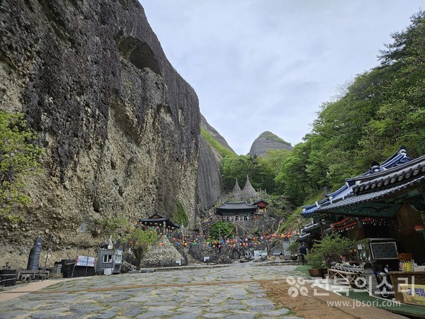 마이산에 비가 내린다.