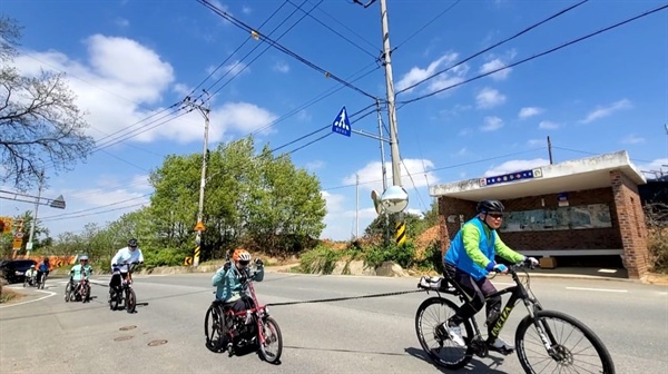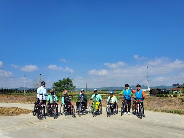 휠체어사이클을 교체하여 팀원들은 다시 합심하여 그 옛날 일제에 맞서 흰 옷에 죽창과 농기구를 무기라고 들고 내달렸을 동학의 마을길을 달렸다.