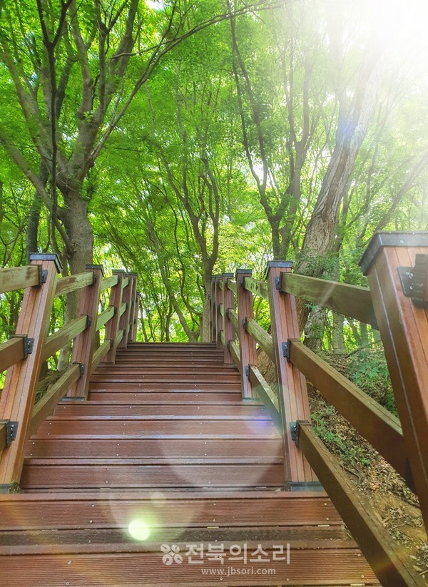 녹색 가득한 숲과 찬란한 햇살이 너무 아름다운 유월의 아침 풍경입니다. 마치 천국을 향하는 계단과 같은 이 곳은 전주시 건지산 숲길입니다.