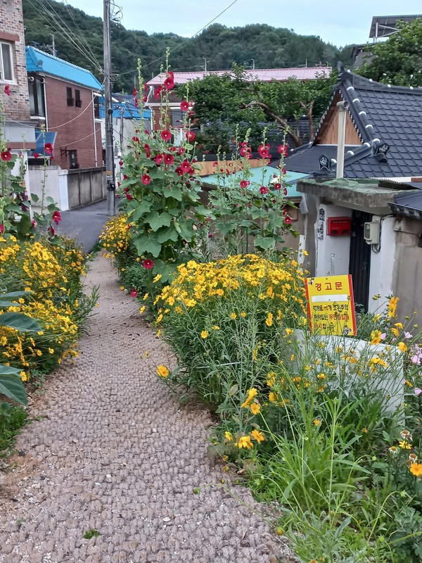 한달 전 쯤에 전주시 남노송동의 한 골목길을 걷다가 주택 옆 고샅길에 아름다운 꽃들이 심어진 것을 보았습니다.