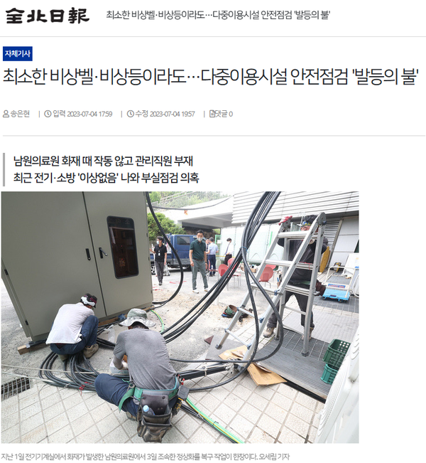 [전북일보] 최소한 비상벨·비상등이라도⋯다중이용시설 안전점검 '발등의 불'(7/4, 송은현)