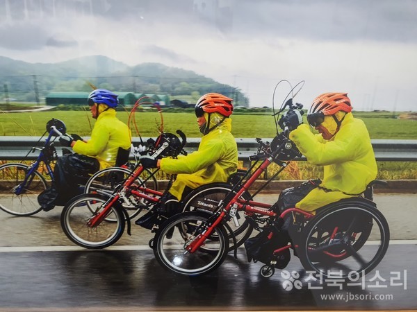 - 척수장애 딛고 전국 최초 '휠체어사이클 국토 종단' 나선 '전북 장애인 5명'..."전북특별자치도 알리고 장애인들에게 긍정 인식 심어주기 위해 대장정"