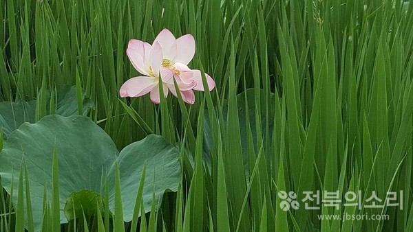중륵이 총생하고 뚜렷하여 한여름 뜨거운 뙤약볕에서도 청초함을 잃지 않는 창포와 연잎 그리고 우아한 연꽃이 조화로운 풍경입니다. 더위에 지친 영혼을 잠시 맑게 해주는 덕진연못의 잔잔한 아침 풍광입니다.