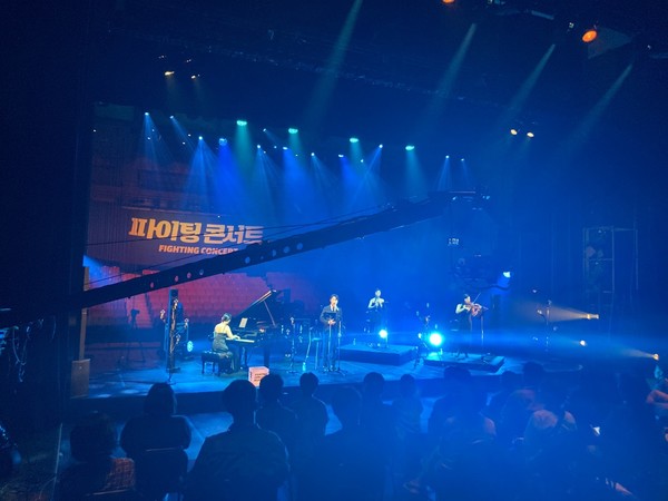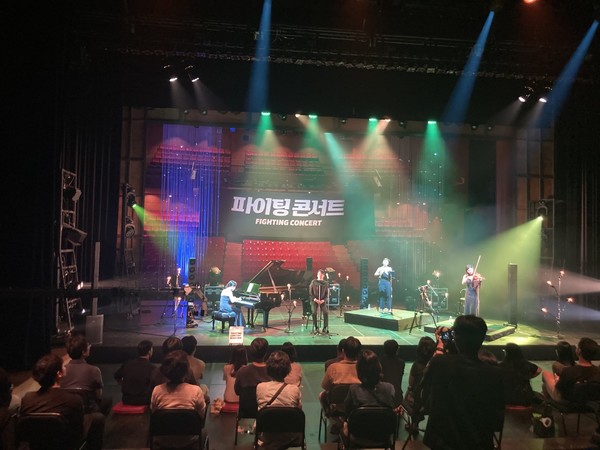 3년 간 파이팅 콘서트를 비대면으로 공연하고 제작했는데 이번에는 40여명의 관객들과 유튜브로 지켜 본 사람들이 같이 했네요. 무대 위에 앉아서 연주자들이 연주하는 모습을 가까이 보고 들으니 참 좋았습니다.