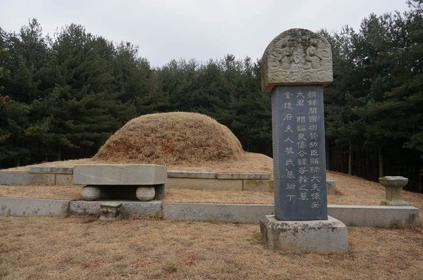 묘비에는 ‘배정부인청송심씨부전(配貞夫人靑松沈氏祔前)’, 즉 '배우자 정부인 청송심 씨를 앞에 합장하다'라는 내용이 새겨져 있었기 때문입니다. 제가 이런 묘의 형태를 처음 본 것은 오래전 전주시 덕진구 금상동 법수뫼 마을에 모신 저희 조상님이신 이방간(회안대군) 할아버지의 묘소를 방문하여 처음 알게 되었습니다. 회안대군 묘소는 전면에서 보면 묘가 한 기만 있는 것처럼 보이나 옆에서 보면 묘가 두 기가 있습니다.