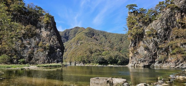 인위적으로 만든 죽도 폭포를 지나 강물은 그날의 그 꿈을 아는지 모르는지 오늘도 그저 유유히 흐르고 있다.