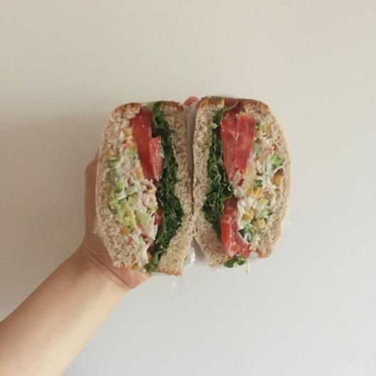 재료 : 통밀식빵 2장, 크래미 4조각, 스위트콘, 브로콜리, 토마토 1/2개, 상추 3장, 마요네즈 3스푼. 허니머스타드, 크림치즈