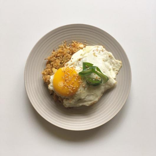 5. 그릇에 담고 준비해둔 달걀 후라이, 닭가슴살 소시지를 올린다.(선택사항)