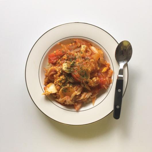 재료 : 두부 반모, 닭가슴살 1캔, 양파 1/2, 토마토 1개, 달걀 1개, 토마토 퓨레, 뉴트리셔널 이스트, 어니온 시즈닝