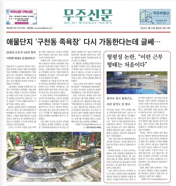 [무주신문] 애물단지 ‘구천동 족욕장’ 다시 가동한다는데 글쎄...(7/24, 1면, 2면, 이진경)