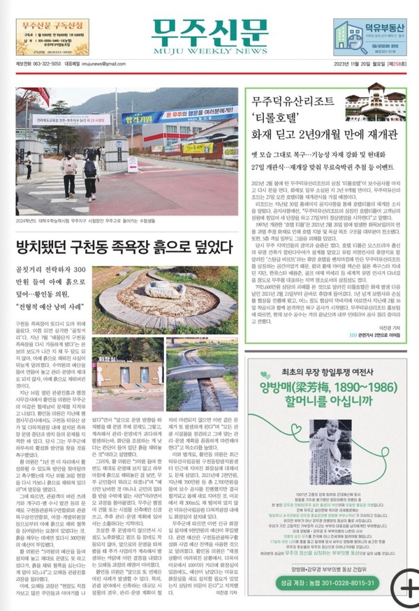 [무주신문] 방치됐던 구천동 족욕장 흙으로 덮었다(11/20, 1면, 이진경)