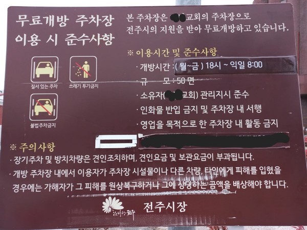 "전주 도심 교회의 주차장을 개방하는 시간을 조정해주시기 바랍니다" 민원 넣었더니...
