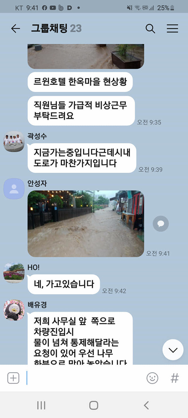 사진 한장으로 전 직원이 사무실에 나와 시시각각 카톡으로 전해지는 상황에 따라 배수시설을 정비하곤 했습니다