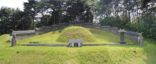 왕건은 머리가 잘린 그의 시신을 찾아내 이곳에 장사를 지냈다. 당시 시신에는 머리가 없었기 때문에 금으로 그 모양을 만들어 붙였으며, 도굴을 염려하여 봉분을 세 개로 만들어서 어느 것이 신숭겸의 묘인지를 구별할 수 없도록 하였다고 한다. 왕건은 생명의 은인인 신숭겸에게 자신이 묻힐 묏자리로 생각했던 조선의 팔대명당을 아낌없이 내 준 것이다. 풍수지리가들은 이곳을 군왕가장지지(君王可葬之地)라 부르며 대략 2,500년 정도의 지기가 보장되는 곳이라 평한다.