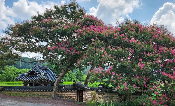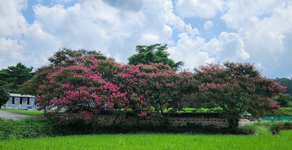배고팠던 우리 세대 시골 출신들은 배롱나무와 쌀밥이야기를 고향의 추억 속에 묻어두고 있게 마련이다. 왜 효도 교육의 성지인 효감천을 백일홍 꽃으로 장식했을까? 여름과 가을을 이어주는 백일홍은 역사가 오랜 사찰, 서원, 사우, 정자, 고택 등을 여름철 명소로 만든다. 백일홍도 매화나 연꽃처럼, 귀한 꽃은 불교니 유교니 편가르지 않고 두루 사랑받는다. 부처님께 바치는 6공양물은 꽃, 등, 향, 과, 차, 쌀을 일컫는다. 이중에서 꽂공양을 백일간이나 할 수 있는 게 배롱나무다. 그러기에 명산대찰에는 오래된 매화와 함께 배롱나무가 자리하고 있다. 식물분류상 부처꽃과에 속하여 절집의 꽃으로 딱 어울린다.