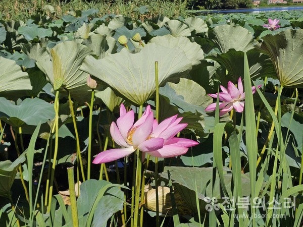 전주를 비롯한 전북 전 시·군지역이 지난 7월 28일 이후 하루도 빠짐없이 폭염주의보와 폭염경보가 8월 30일까지 34일째 계속 발효될 정도로 무더위와 열대야가 극심했다. 올 여름은 살인적 폭염으로 마치 대한민국 전체가 찜질방이 된 듯한 느낌이었다. 그럼에도 진흙 속에서 피어난 연잎과 연꽃들은 언제나 청정한 자태를 유지한다. 깊고 더러운 곳일수록 그 연잎 사이에서 피어난 꽃은 더욱 함박스럽고 청순하고 평화스럽다.