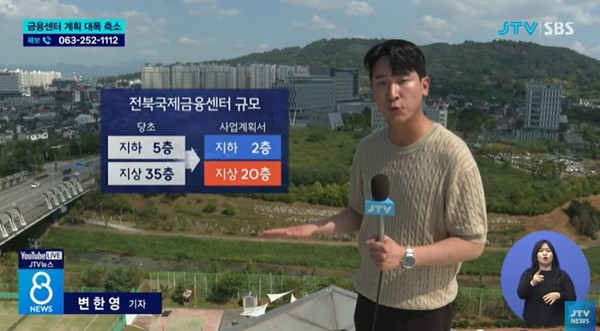JTV는 지난해 전북자치도는 민간 투자 방식으로 제3금융중심지 지정의 핵심 인프라인 국제금융센터를 짓기로 하고 기존 계획보다 3배 규모로 늘리면서 장밋빛 미래가 점쳐지기도 했는데 이 계획이 대폭 축소된 것으로 확인됐다는 보도를 해 이목을 끌었다.