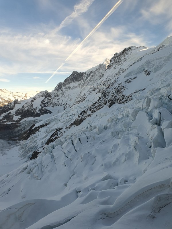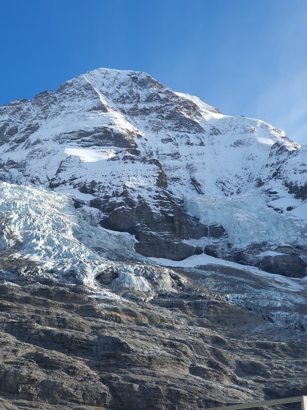 '그린델발트 터미널'에서 '아이거 글랫처 역'까지 약 30여분 동안 오른 뒤 도착한 높은 전망대에서 바라본 융프라우요흐는 그야말로 환상적인 '순백의 산'이었다. 융프라우 정상이 매우 가까이 마주 보이는 유일한 이곳 전망대는 알프스산과 알래치 빙하, 만년설까지 감상할 수 있는 대표적인 곳이다.