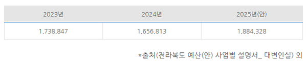 *전북자치도청 대변인실 2025년 예산안 (단위 : 천원)
