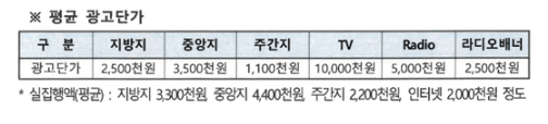 하지만 해당 문서의 언론사 선정 기준을 보면 평균 단가만 공개되어 있으며 다수 지자체에서 분류하고 있는 언론사별 등급표 및 세부 심사 기준이 마련되지 않았다.