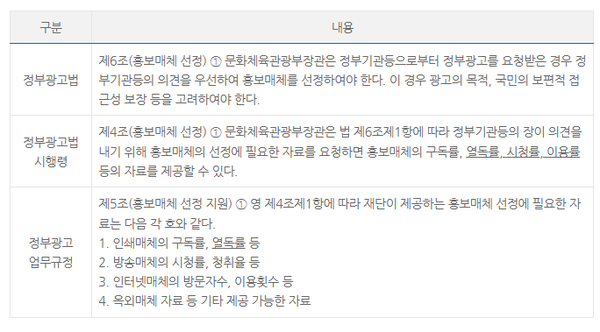 2) 언론사 선정 기준 - 광고대상, 내용, 수급상황, 매체별 제시단가 및 기존 가격 등 언론사별 아래와 같은 기준을 종합적으로 고려하여 단가 선정하여 지원한다고 밝혔다.