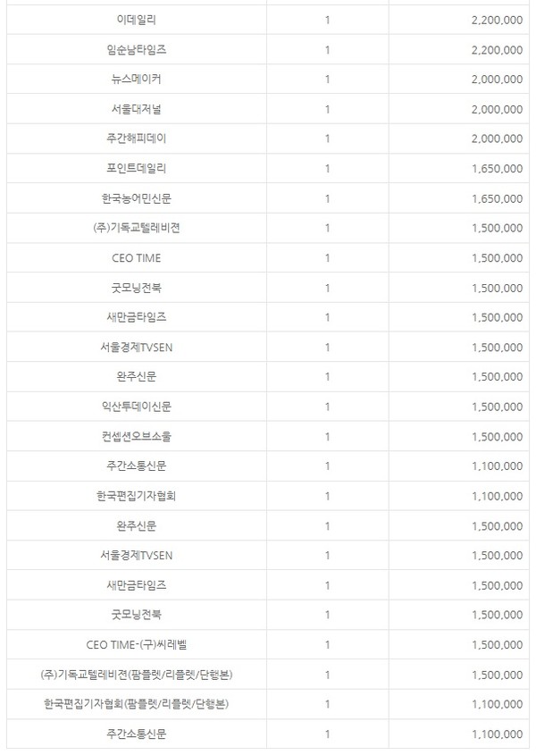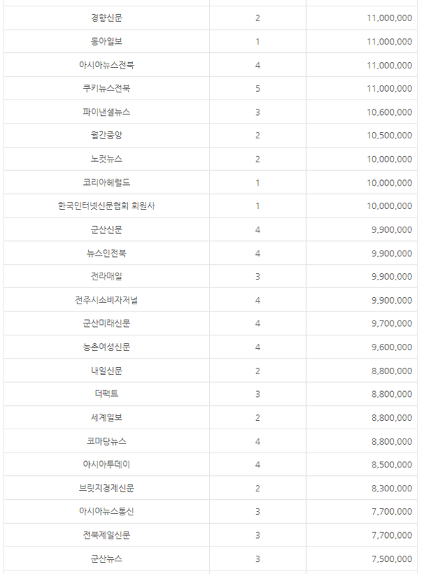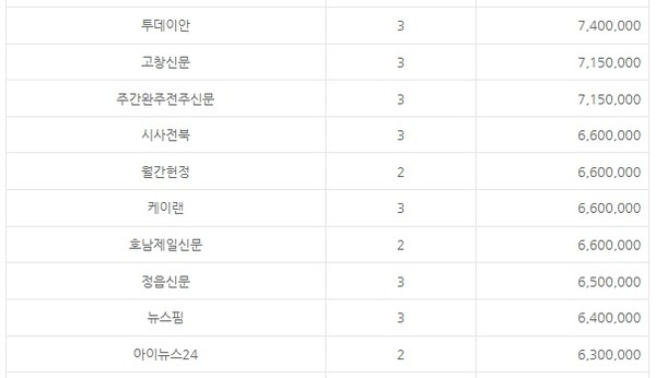 *300만 원 ~ 400만 원 구간/ 새만금일보, 전주매일신문, 전주일보, 전라매일신문, 호남제일신문, 전북연합신문
