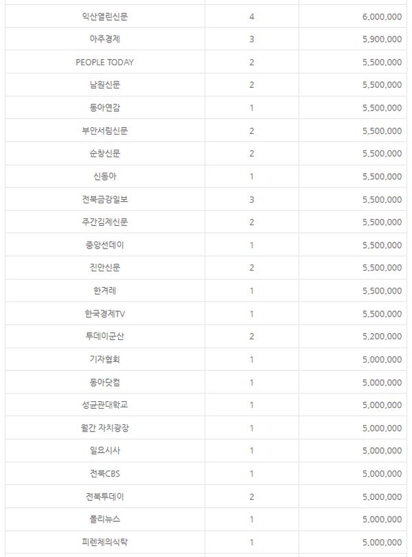 *500만 원 이상 구간/ 전북일보, 뉴스1코리아, 전북중앙신문, 뉴시스전북, 노컷뉴스