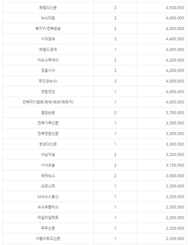 *400만 원 ~ 500만 원 구간/ 전북도민일보, 전라일보, 전민일보, 새전북신문