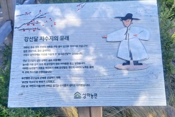 농민들은 강선달의 공덕에 감사하는 뜻에서 '강선달 저수지'라 부르기 시작했고, 오늘날 아름다운 상하농원의 호수경관 배경이 되었다. 상하면 구시포항 입구에는 강선달 힐링센터라는 지역공동체가 운영하는 팬션이 있다. 착한 강선달이 도와주는 덕분인지 이용자들 평판이 좋은 성공적인 마을가꾸기 거점시설로 자리매김하고 있다.