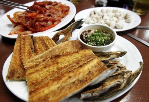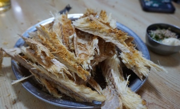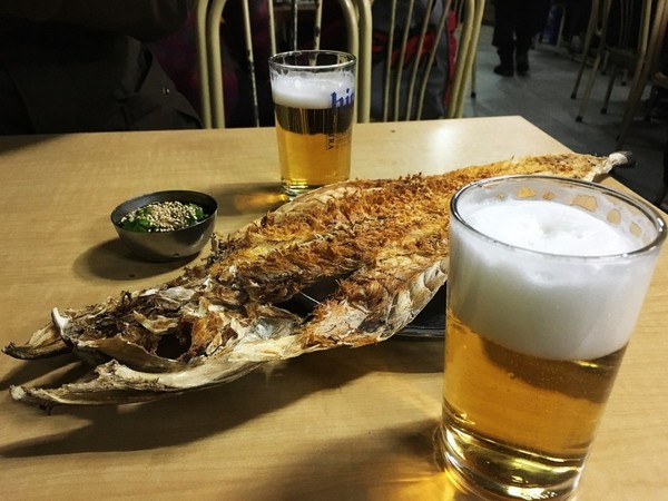 갑오징어나 황태포에 소탈한 간장소스를 안주로 하여 값싼 가정용 맥주를 들이키는 데 이것이 '가맥'이다.