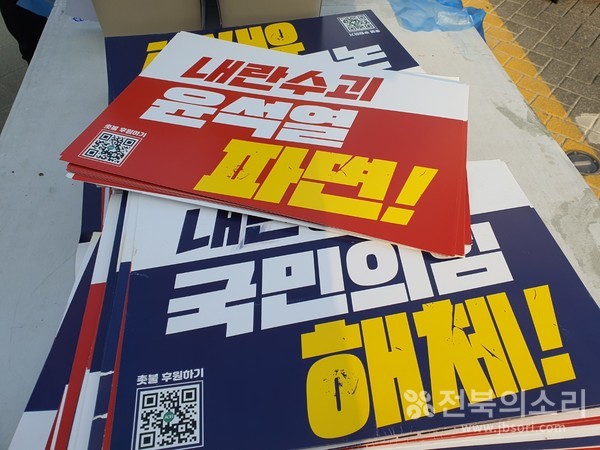 대한민국의 보물 제583호로 지정된 전주 풍패지관 앞에서 내란 우두머리 혐의를 받는 현직 대통령 탄핵과 파면을 촉구하는 집회가 매주 토요일 열리고 있으니 참 아이러니하다. 집회 시작 30분 전인데 벌써 100여명의 시민들이 ‘내란 수괴 윤석열 파면’, ‘내란 공범 국민의힘 해체’란 피켓을 챙겨 들고 자리에 앉아 기다리고 있었다. 그러자 연단에서는 20대로 보이는 여성이 음악에 맞춰 율동과 함께 ‘윤석열 탄핵’, ‘윤석열 파면’이란 구호를 외치며 분위기를 띄우기 시작해 눈길을 끌었다.