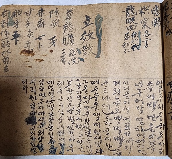 장터 약전거리에 나온 약초와 그약초를 파는 촌로들에게서 다양한 약초사용 정보를 수집했던 것으로 보인다. 그래서 생겨난 말중에 '중한 병이라도 장터 난장공연하는 소리꾼에게 소문을 내면 어디서 귀신같이 약초와 치료법을 들고 나타난다'고 했다. 나는 오래 전에 소리꾼 집안에 내려오던 의학경험방이 수록된 휴대용 의학서책을 보게 되었다.