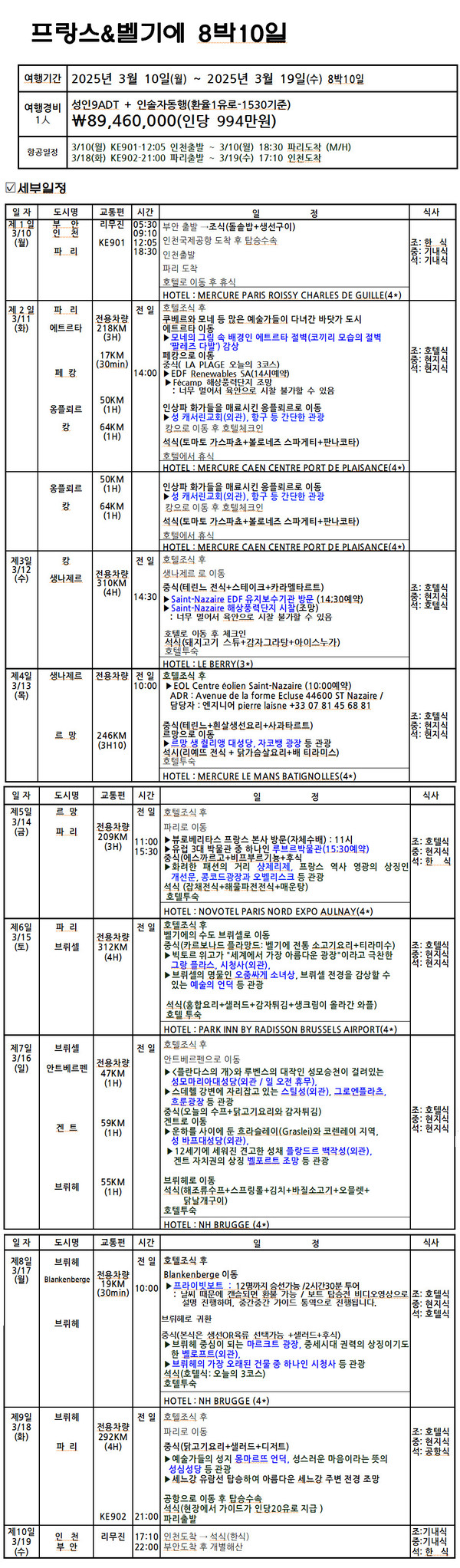 ※ 별첨: 8박 10일 프랑스-벨기에 해외연수 일정표