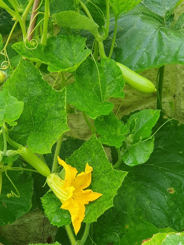 7월 어느날, 손가락 같이 가는 호박이 시든 꽃을 물고 자란 것을 보았는데 그 호박이 시장에서 파는 호박 같이 크게 자라서 따먹었는 지는 모르겠습니다.