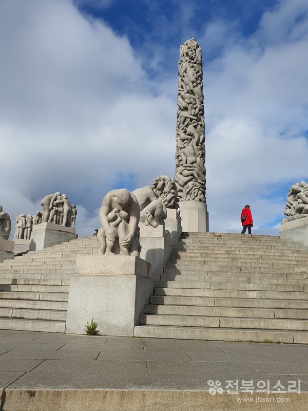 특히 공원의 끝 부분에 자리한 높이 17m의 '모노리텐'이라 불리는 조각품은 가장 많은 사람들의 시선을 붙잡았다. 한 사람의 작품이라고 하기엔 상상하기 힘들 정도로 정교하고 웅장했다.
