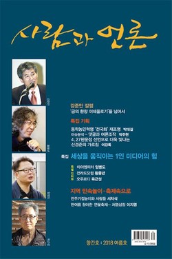 <사람과 언론> 창간호 편집의 특징은 무게 있는 칼럼과 창간사를 전면에 배치하고, 오랫동안 1인 미디어로 활동해 온 3명의 인터뷰를 부각시켰다. 제주에서 ‘아이엠피터’로 활동 중인 임병도 씨와 <전라도닷컴> 황풍년 대표, 충청권에서 ‘오주르디’로 활동하는 육근성 씨의 인터뷰를 통해 우리사회의 적폐청산 걸림돌과 언론의 역할 등을 중점적으로 다뤘다.