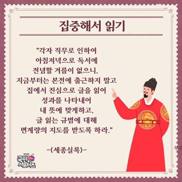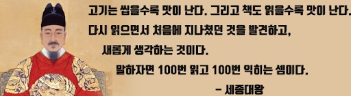 나같은 평범한 시민의 공부와는 근본적으로 다른 것이라서 세종의 공부법이 과연 오늘의 시민에게도 도움이 될지 확신하기 어려운 점이 있다. 그러나 조금 더 생각해보면 왜, 도움이 되지 않겠는가. 왕의 공부법은 우리가 세상과 사물에 관한 통찰력을 기르고, 당면한 크고 작은 문제를 해결하는데 상당한 시시점을 제공하고 있다.