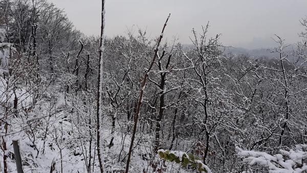 아침을 먹고 인근 야산으로 나왔는데 지난 가을 낙엽을 떨어트린 나무 가지 위에는 소담스러운 하얀 눈꽃이 피어 하얀 나라 하얀 세상으로 변했습니다. 금년 가을 울긋불긋 단풍이 물들었던 바로 그 자리에 오늘은 은빛 비단 같이 하얀 눈꽃을 피우고 있습니다.