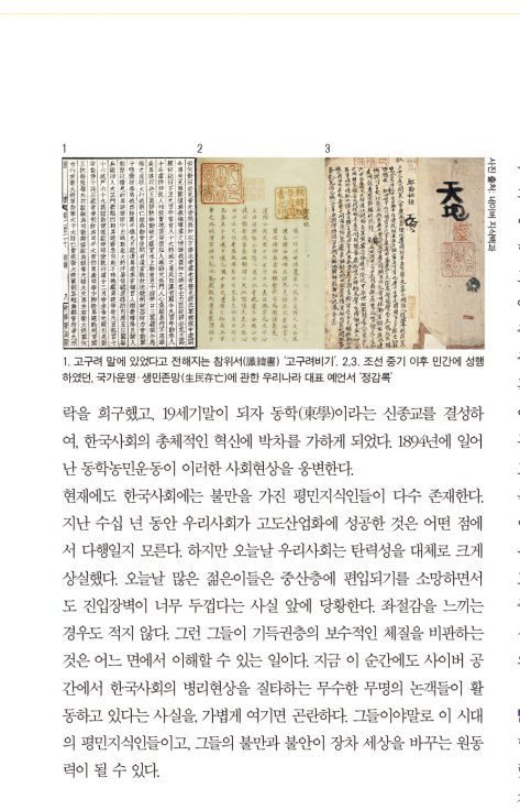 3. 결론적으로, 우리 역사에 나타난 허다한 예언서의 흐름이 마침내 조선 말기에 동학이라는 신종교의 창출로 이어졌다는 주장입니다.
