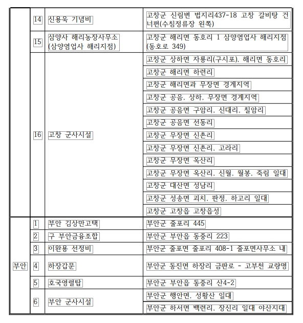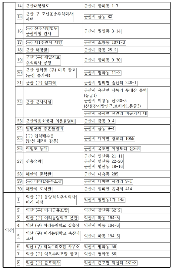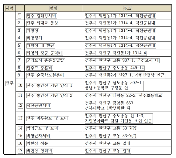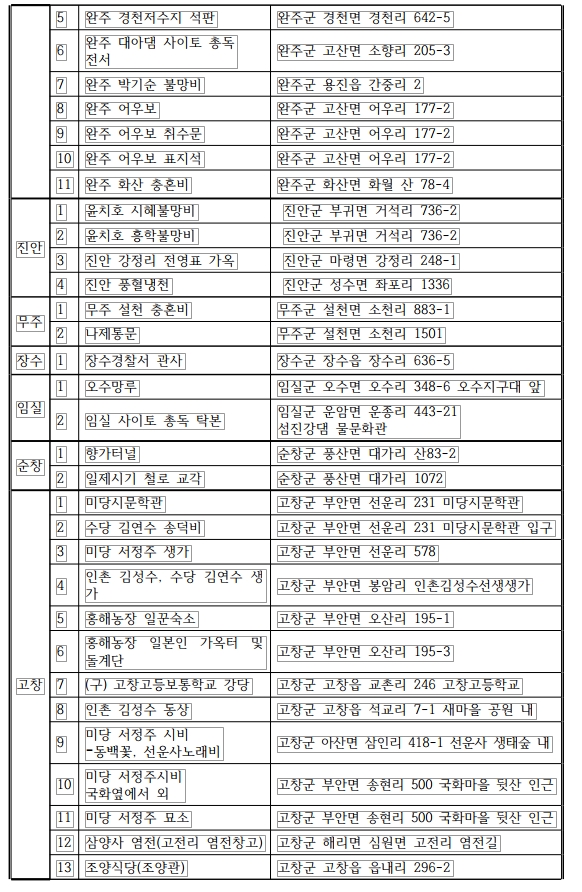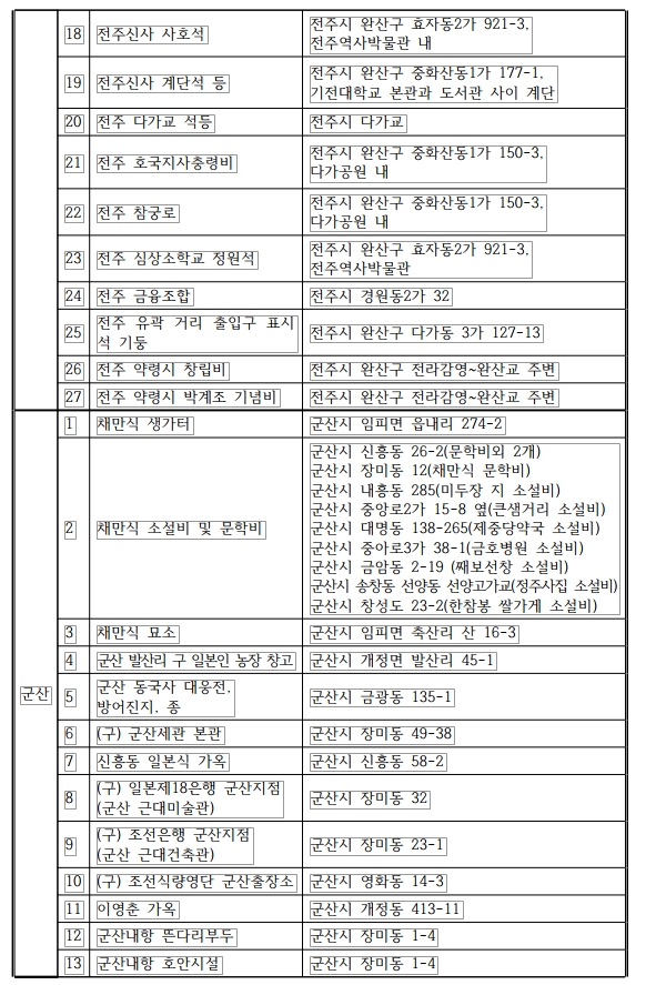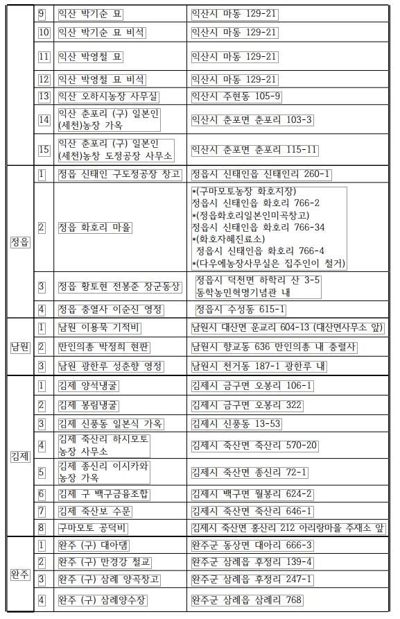 전라북도 친일 잔재 목록 : 지역별 전체 목록