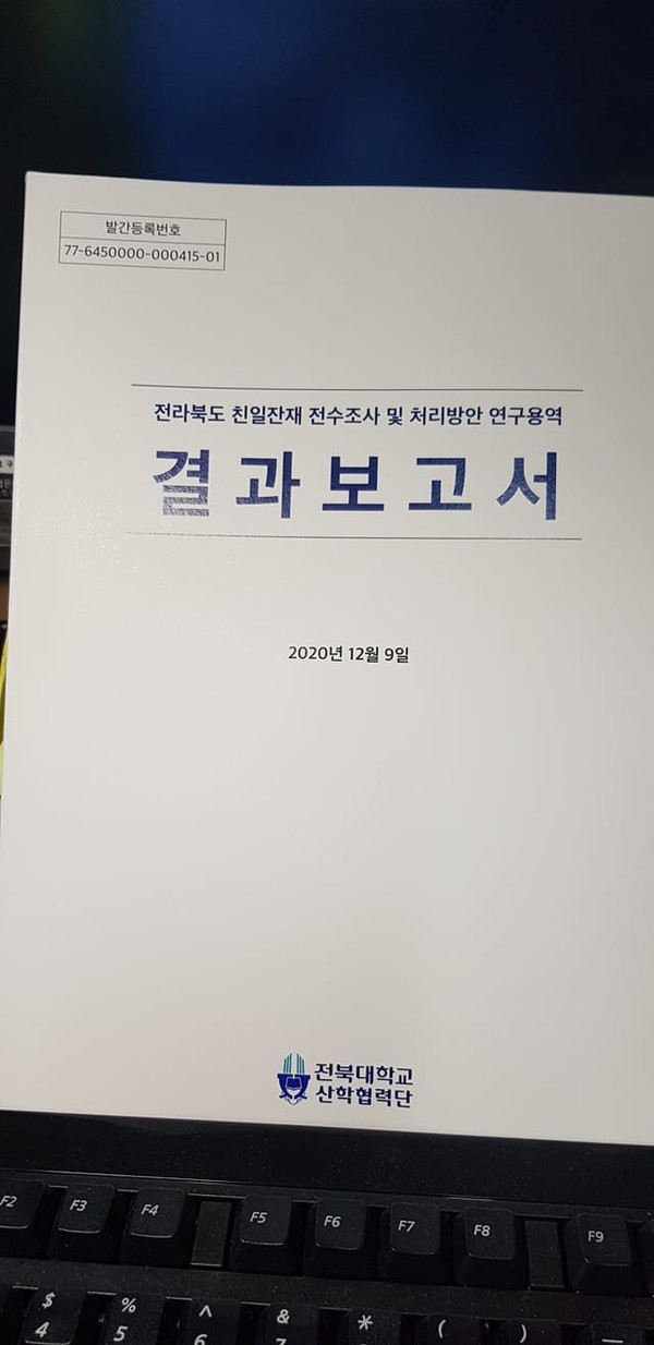 미완의 식민 잔재 청산과 올바른 역사의식 고취를 위한 ‘전라북도 친일 잔재 전수조사 및 처리방안 연구용역 결과보고서’가 지난 12월 9일 발간됐다.