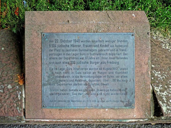 이 도시의 성문인 ‘마르틴의 문’이 떠오른다. 1940년 10월 22일, 나치의 추종자였던 로베르트 하인리히 바그너가 독일 서남부지역의 유대인 이송 명령을 내렸다. 그때 이 도시에서도 350명의 유대인이 남프랑스로 옮겨져 강제수용소에 갇혔다. 그들은 대부분 그곳에서 사망했다. 1942년 7월 18일, 이 도시에서 잔명을 유지하고 있던 소수의 유대인들이 다시 체포되었다. 이번에는 폴란드의 아우슈비츠로 이송되어 다시 돌아오지 못했다.