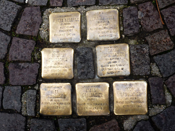 본래 공회당이 있던 자리에는 기념비가 세워졌다. 예전에 유대인이 살던 곳에는 희생자의 이름을 새긴 청동 판을 부착해 그들의 넋을 위로하고 있다. 슬픔의 흔적이 길가에 낭자하다.
