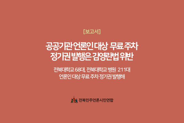 이에 앞서 전북민언련이 2019년 조사한 자료에 따르면 전북대의 경우 298대의 무료 주차권을 언론사들에게 제공한 것으로 나타났다.